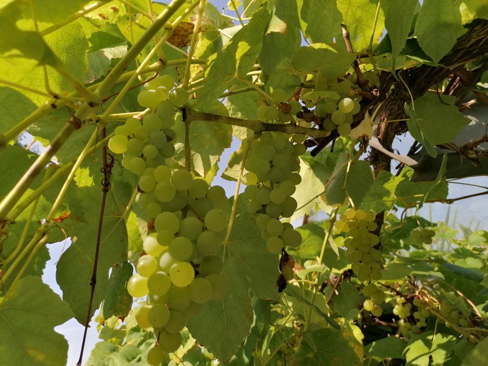 Einige Sorten hatten längere Reihen, Arkadia etwa oder Selma, Katharina, die alte Muskat Blau. Arkadia aus Moldavien war eine Enttäuschung, wie bei mir. Geringe Frosthärte, hohe Botrytisanfälligkeit, kurzes Erntefenster und keine guten Eigenschaften für den kommerziellen Anbau wie z.B. keine Lagerfähigkeit. Im Hausgarten ist das weniger wichtig.