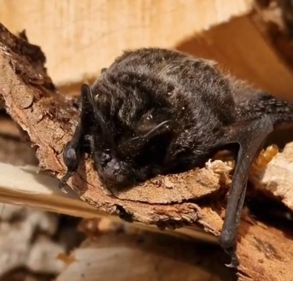 Wer kann mir sagen, welche Fledermausart sich hier im Holzstapel niedergelassen hat?