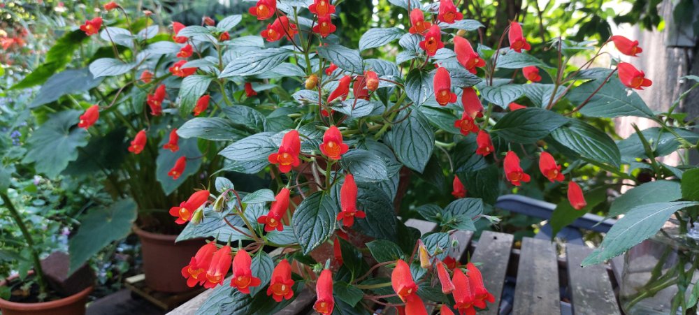 Seit einer Woche zieht die Seemannia alle Blicke auf sich. Noch im Topf, aber nach der Überwinterung werde ich sie im kommenden Jahr sicherlich auch auspflanzen. Und noch so viele Knospen!!!