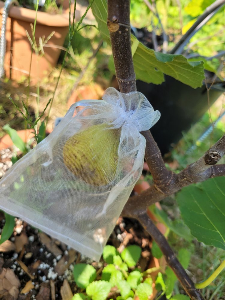 Meine Piccolo Giallo di Anzuno (Ficus carica Piccolo Gelbe von Anzuno), hatte dieses Jahr die ersten zwei Früchte am 15. und 19. August, 19 und 24 Gramm. Mich hatte es gereizt, dass sie eine Piccolo-Unterart sein soll und außerdem hatte ich noch keine gelbe Feige. Die Blätter erinnern mich an meine Maulbeerbäume. Geschmacklich geht es für mich Richtung honigsüß, melonig, beerig. Schön süß. Ich habe gestern noch mal ein Bild von den Blättern gemacht und im Verhältnis zu anderen Feigen scheint sie eine Feige für kältere Regionen zu sein. Anzuno liegt in Norditalien an der Grenze zur Schweiz, nähe Domodossola, mit 6.0 Grad Jahresdurchschnitt.