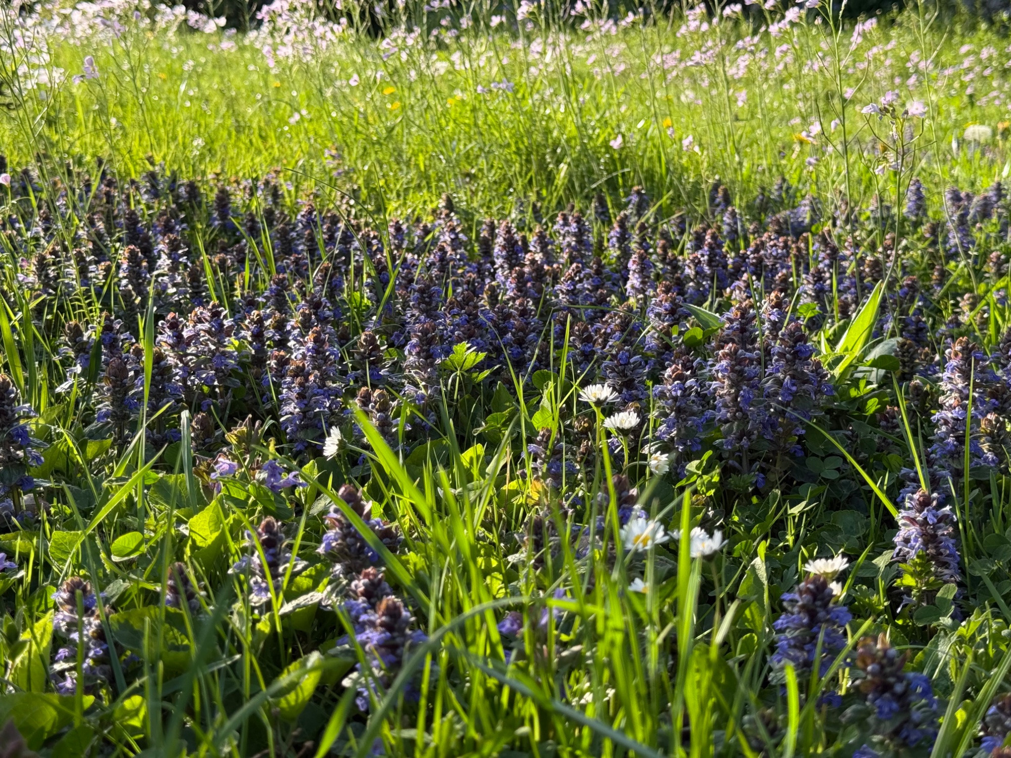 In der Wiese gesichtet: Günsel,Götterblume und Läusekraut.