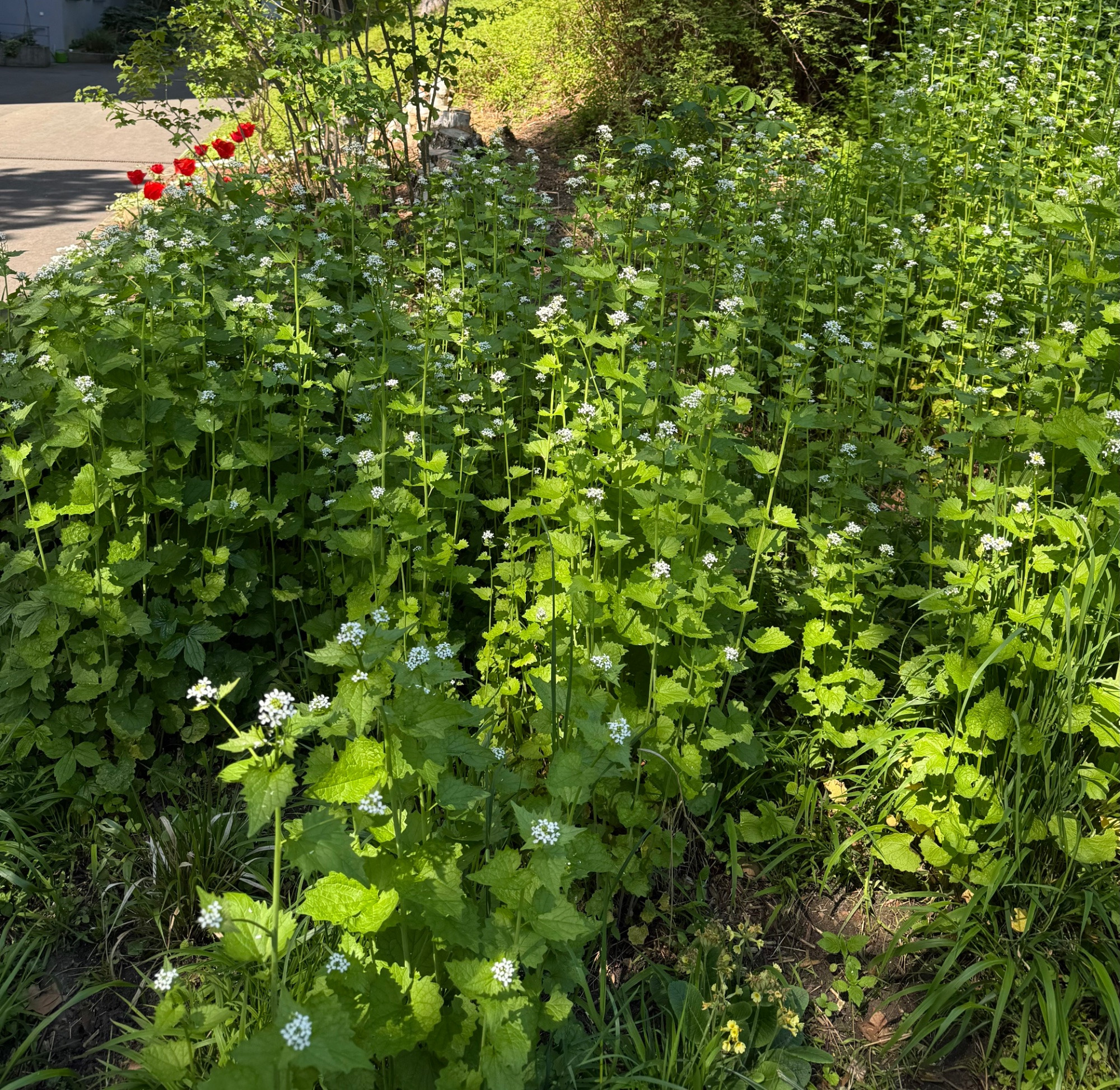 Die Wiesenpflanzen ( Bärlauch, Barbara-Kraut,Wiesen-Schaumkraut) warten auf einen richtigen, ausgiebigen Regen.