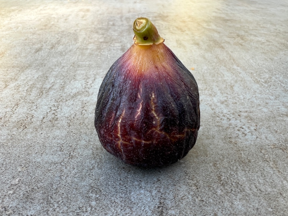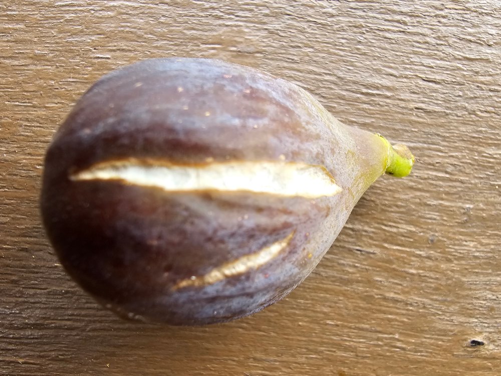 Die Feige hat den Regen, den es hier kürzlich gab, trotz nicht dicker Haut gut überstanden und wog 40-45 g