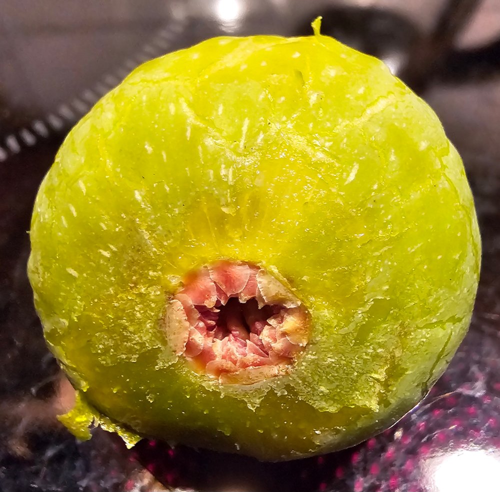 Die Feige hat den Regen, den es hier kürzlich gab, trotz nicht dicker Haut gut überstanden und wog 40-45 g