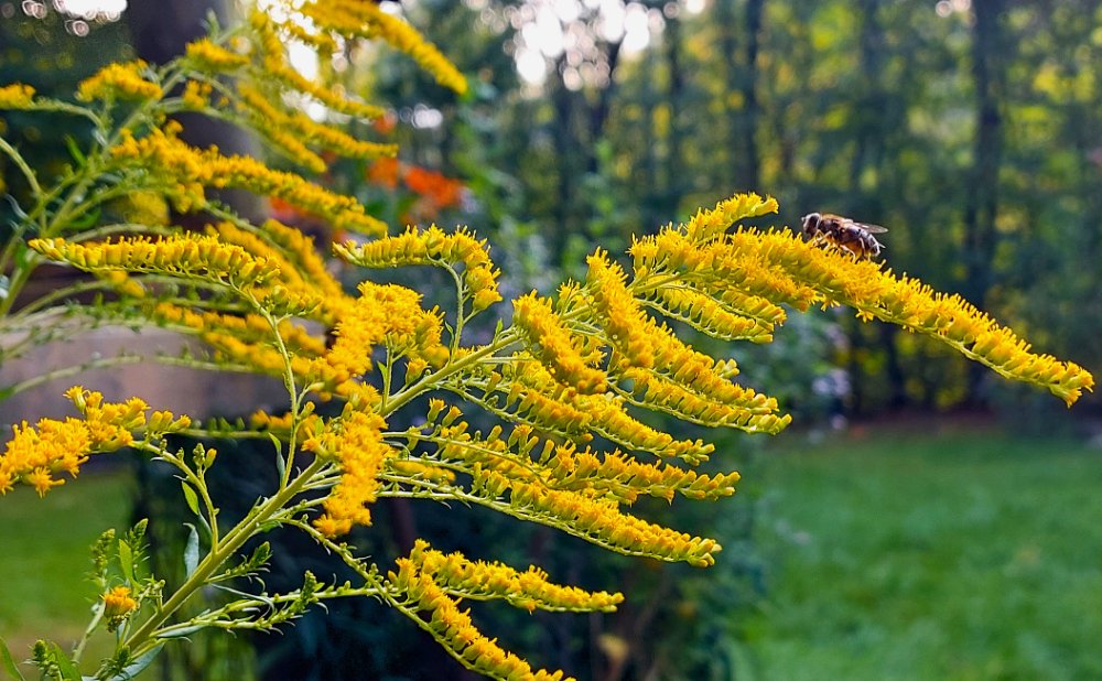 Goldrute, Raublattaster ( Violetta), Sonnenbraut ( in Sonne badend)