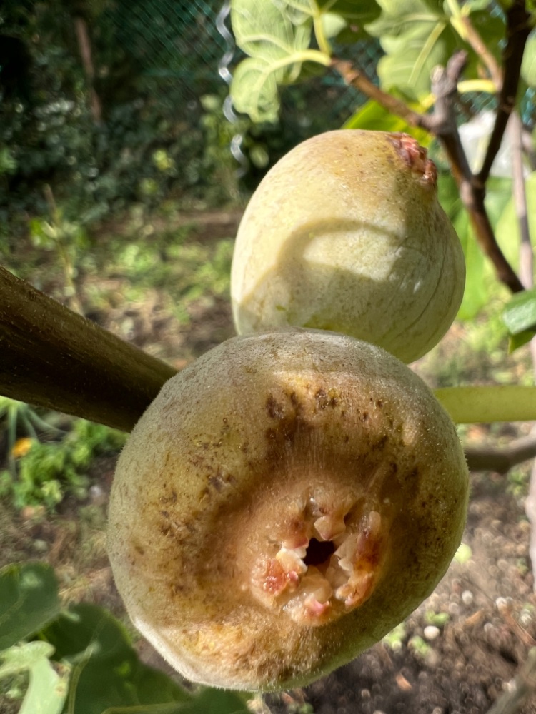 Ich habe gerade die erste Herbstfeige meiner Amatrice Casale geerntet nachdem sie die letzten Tage schon sehr angeschwollen war. Heute habe ich gesehen das schon jemand dran rum geknabbert hatte.
