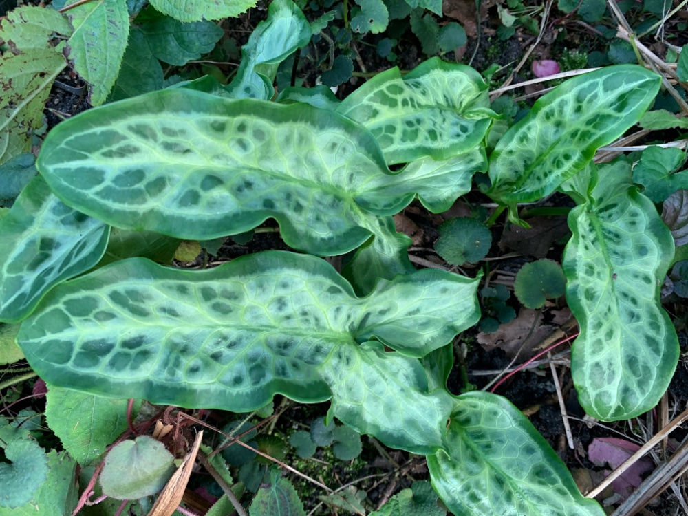Im letzten Jahr habe ich ein Arum ‚Hungarian Rhapsodie‘ aufgrund der Größe versetzten müssen. Michael Dreisvogt hatte in einem Vortrag darauf hingewiesen, dass manchmal kleine Tochterknollen im Boden verbleiben und an der ursprünglichen Stelle austreiben.