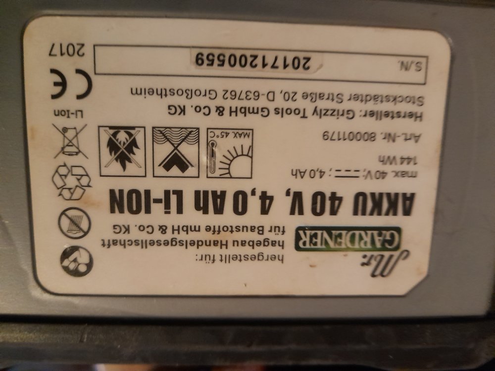 Das Teil wäre längst entsorgt, wenn nicht Lenas Vater (vom Fach) das innerlich komplett neu aufgebaut hätte. Und ebenso, wenn ich nicht seinerzeit über ebay 2 doppelt so starke Akkus gekauft hätte. Gibt es längst nicht mehr. Die schwachen Akkus laufen auch längst nicht mehr. Muss ich mal entsorgen. 2 mal 2 Akkus habe ich heute vermäht. Machte 4 Stunden.