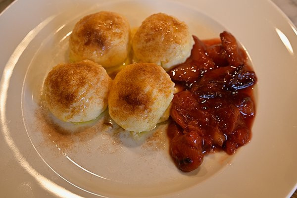 Hier gab es heute als Vorspeise einen Rest von gestern: Blumenkohlauflauf nach Ottolenghi und Kartoffelpü. Als Nach-oder Hauptspeise Quarkgrießklösse mit Zwetschkenröster. (ich habe nur drei geschafft). Martina hat die Anfrage nach dem Rezept für Topfenknödel wohl nicht gesehen. Diese werden jedenfalls auf einer Basis von gekochtem Grießbrei gemacht, sind ganz zart und locker.