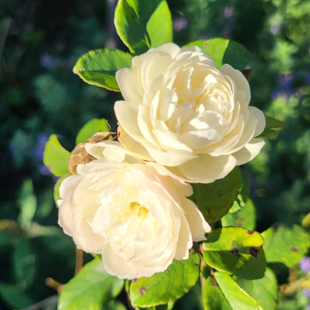Perennial Blue, steht hier als Kaskadenstamm, eine Nachblüte bleibt daher recht schwach. Sie bräuchte schlicht mehr Wasser und Dünger.In diesem Jahr wirklich unermüdlich ist Von Scharnhorst