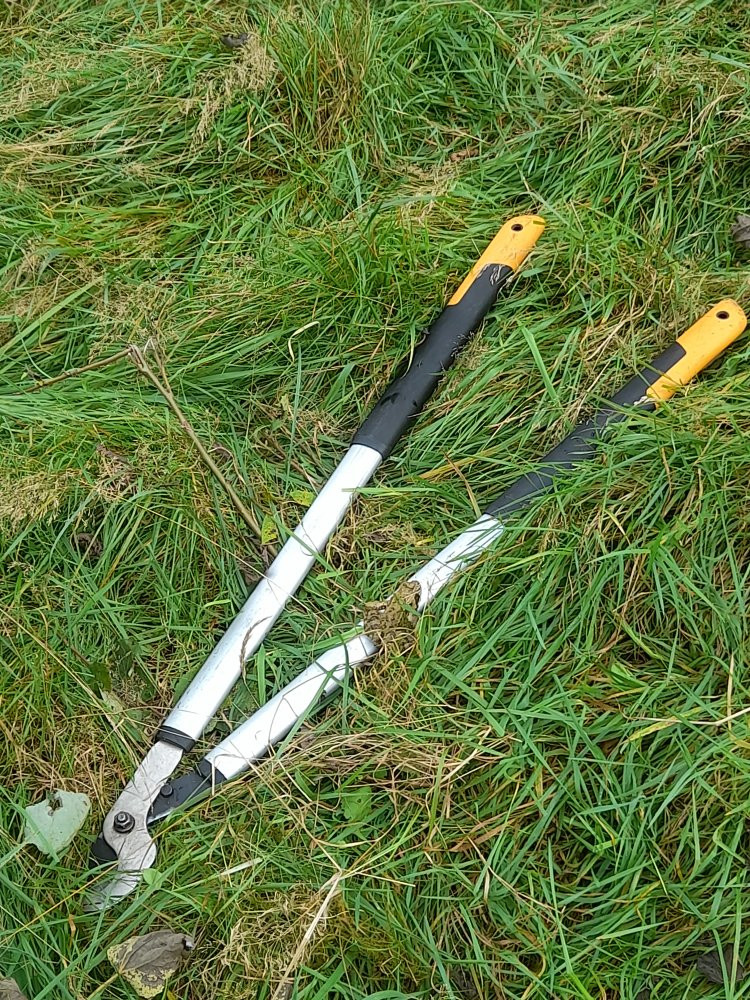 Witzig war, dass die Skudden munter an der abgeschnittenen Ausschlägen knusperten. Nach dem Motto: Wenn die das Zeug "ernten", kann das so schlecht nicht sein. Lena hat auf einer benachbarten Fläche derweil gesenst, ich den Freischneider pilotiert... wenn jetzt der 2 Takter seine neue Zündkerze bekommt, wird's auch mit diesen Flächen ein gutes Saisonende nehmen. Der muss nämlich drüben noch eine Hälfte nachpflegen. Auch dort ist das nervigste Thema Pappel