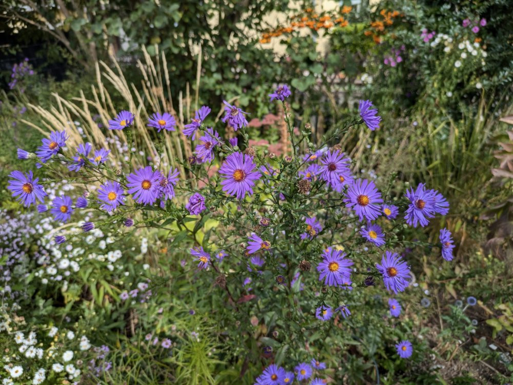 Weiße Astern dominieren zurzeit hier allerdings noch in den Beeten...