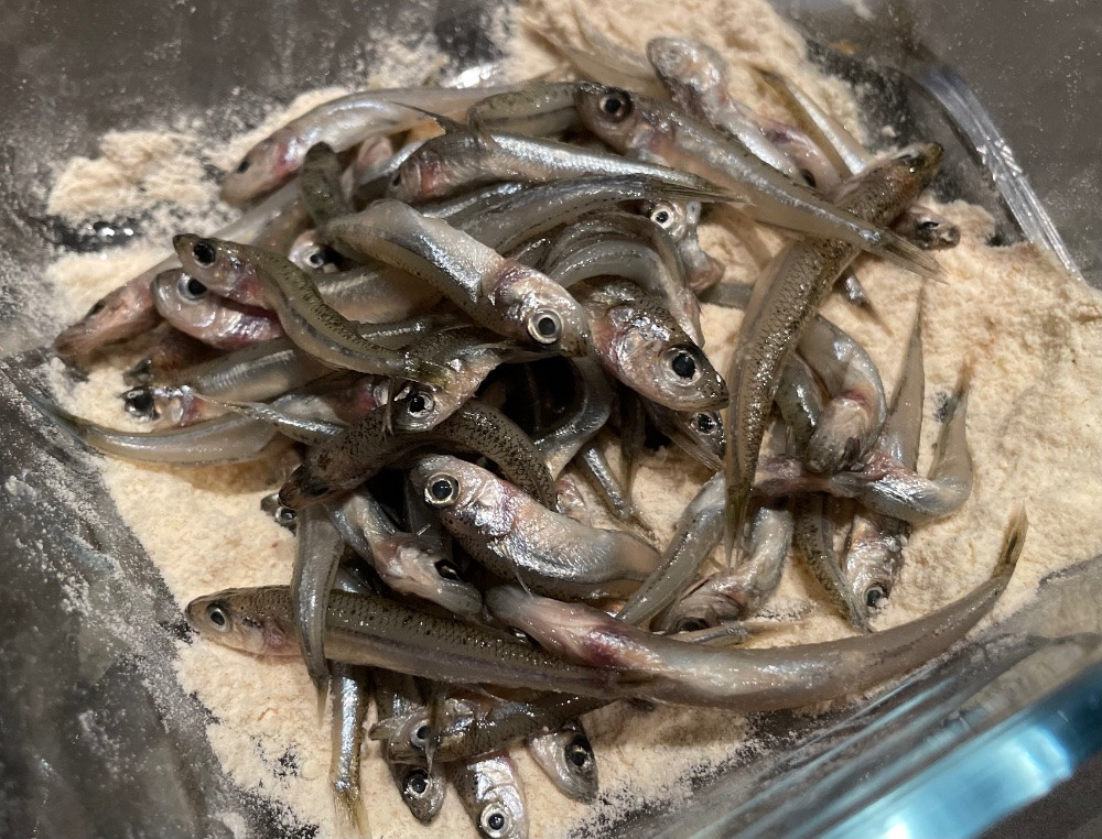 Bei uns gab es frittierte Ährenfische. Ich habe sie vorher in einer Mischung aus Kreuzkümmel, Chili und Salz gewälzt. Jetzt stinkt die Bude, aber es war sehr lecker!