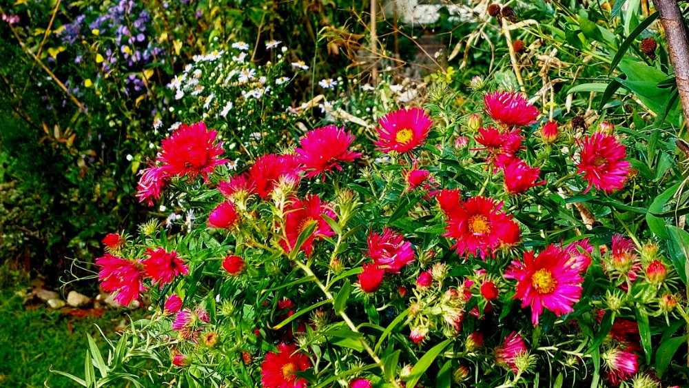 Anbei Aster "Treffpunkt", die ich liebe, da lange blühend und absolut nicht wuchernd