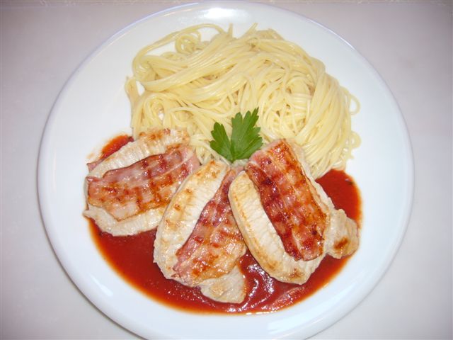 Heute gab es:EisbergsalatJägerschnitzel mit Spaghetti