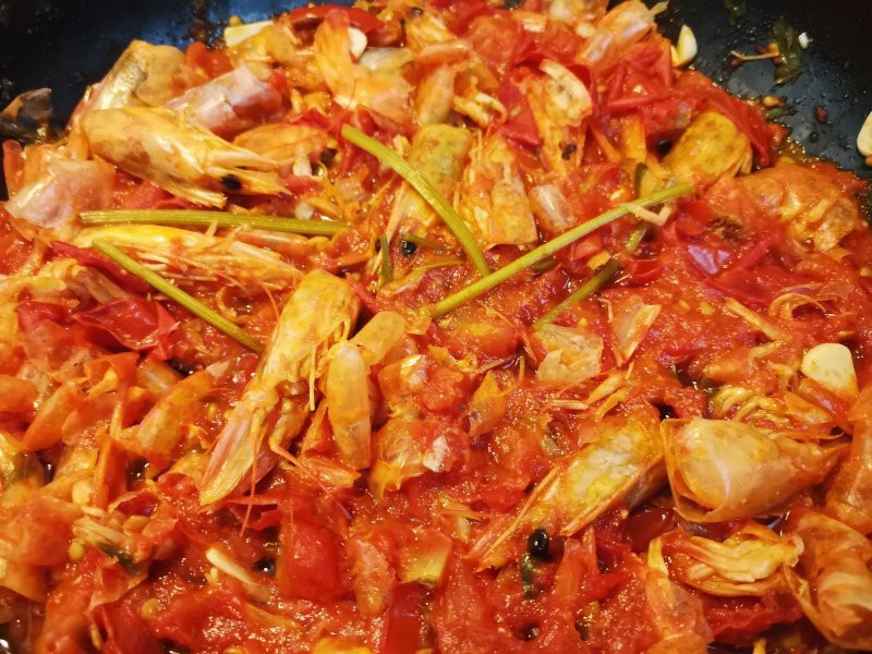 Ich habe letztens Crevetten angebraten, gepult und zur Seite gestellt, die Schalen mit (Garten)Tomaten gekocht und nach dem sieben Soße, Crevetten mit Spaghetti geschwenkt.
