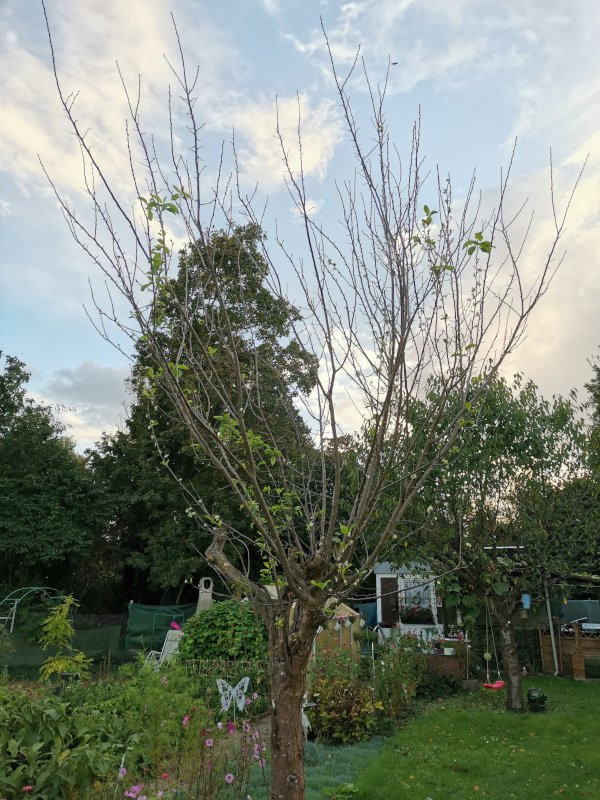 Hier blühen jetzt die Zwetschgen. Die Kletterrose im Apfel und die Fuchsien haben jetzt ihre Zeit