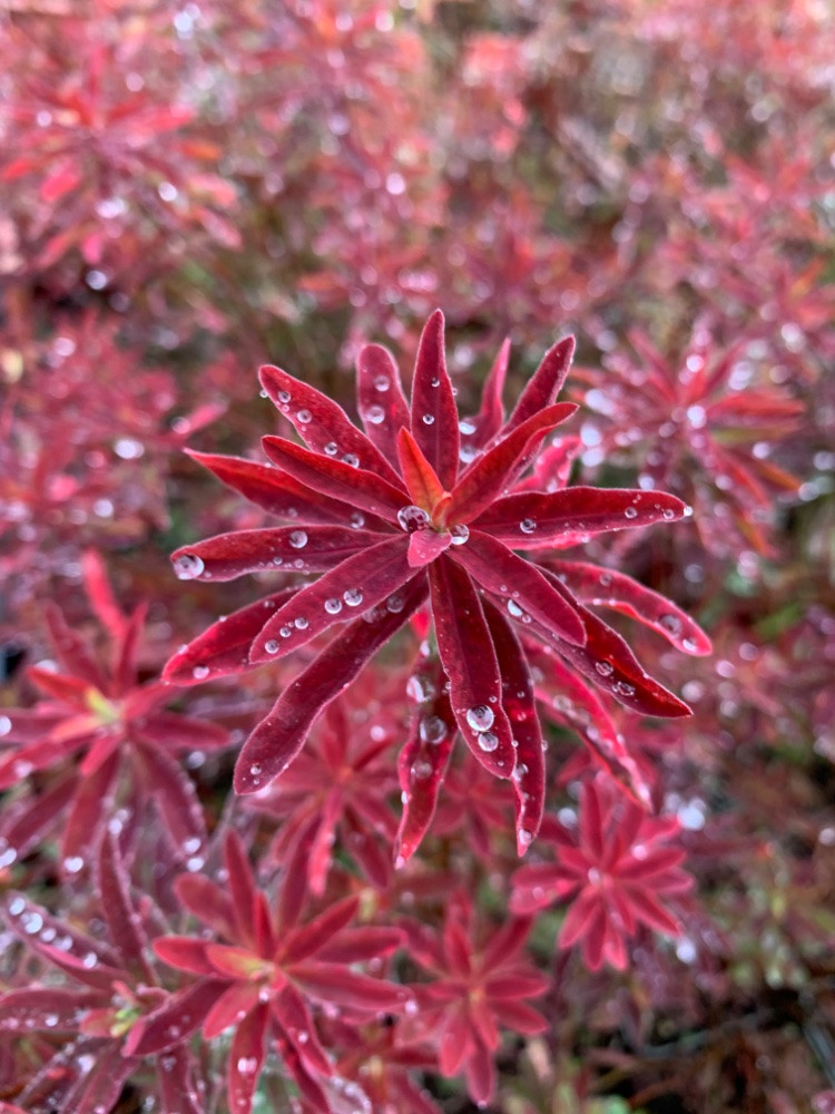 Auch klasse bei allen euphorbia wie sie diesen Lotus Effekt haben so sind sie einige der wenigen Stauden die bei regen hübscher werden wärmend andere Stauden dann niederliegen oder Blüten faulen