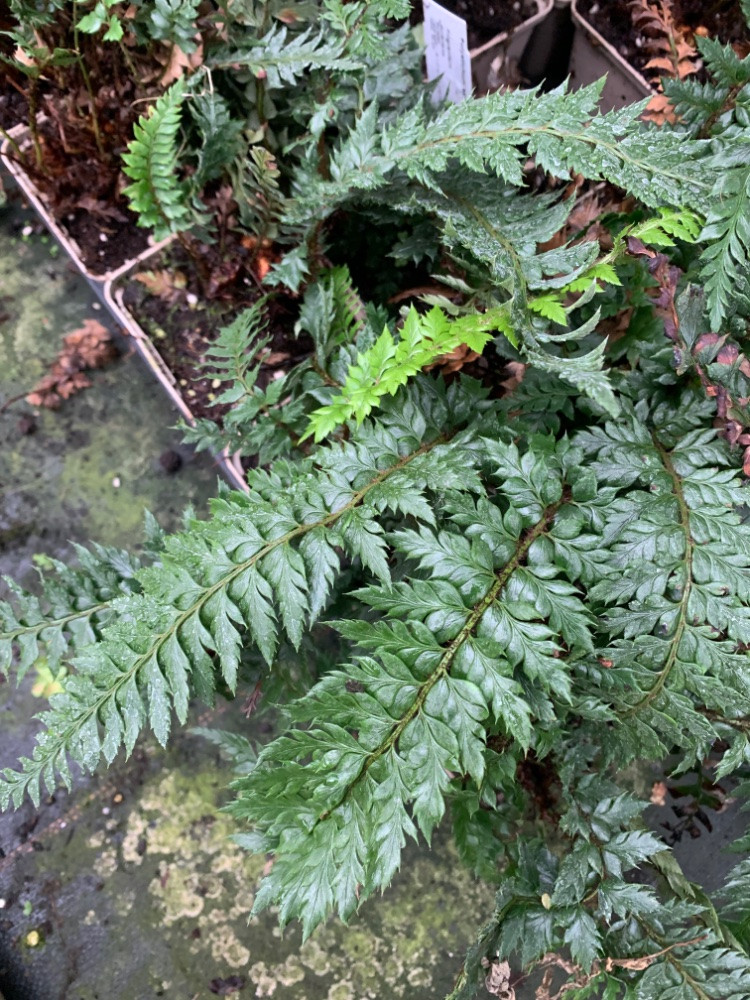 ‚Shiny Holly‘ ist keine setiferum-Sorte, das ist ne eigenständige Art, an manchen Stellen als Verwandter von Polystichum neolobatum geführt - ich dachte bis zum googeln eigentlich, dass es neolobatum sei…