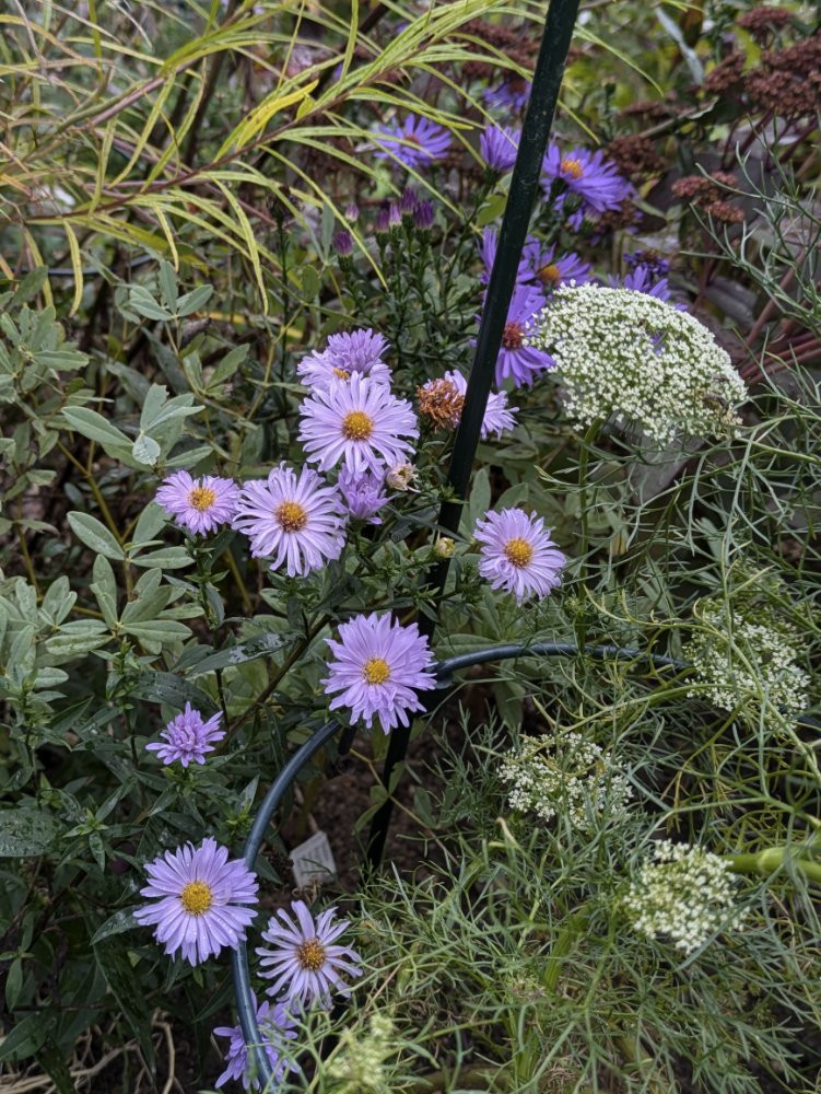 Die Asternblüte ist hier in diesem Jahr eine Pracht. Die Wasserversorgung passte anscheinend, bis auf den Rostpilz an 'Orpheus' stehen sie ausgesprochen gesund da.