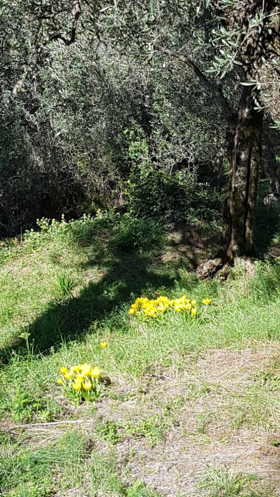 Die oben um den Olivenbaum sind sicher gesetzt worden. Die anderen waren am Wegesrand. Werde mir wohl auch nochmal welche kaufen. Hatte mal drei Zwiebeln gesetzt, aber danach nicht mehr gesehen.