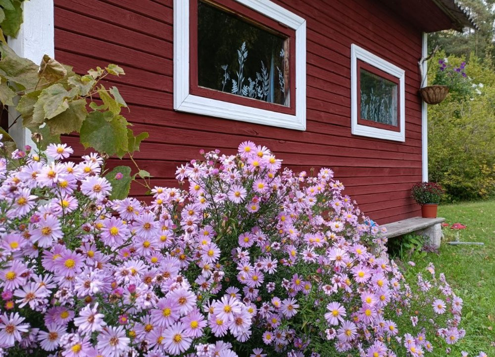 Hier stehen gerade blassviolette Astern in voller Blüte. Die waren schon vor uns hier, daher habe ich keine Ahnung, um was für eine Sorte es sich handeln könnte.