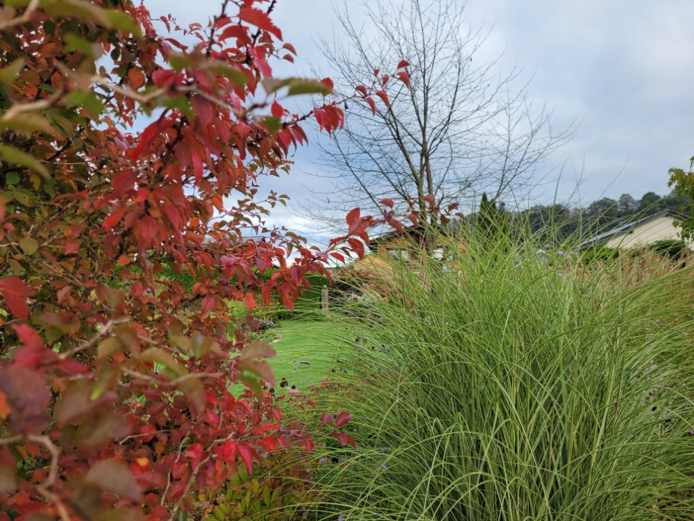 Hier dauert es wohl auch noch eine Weile, bis die Herbstfärbung richtig beginnt, nur meine Zaubernuss zeigt sich schon seit einer Weile im Herbstkleid: