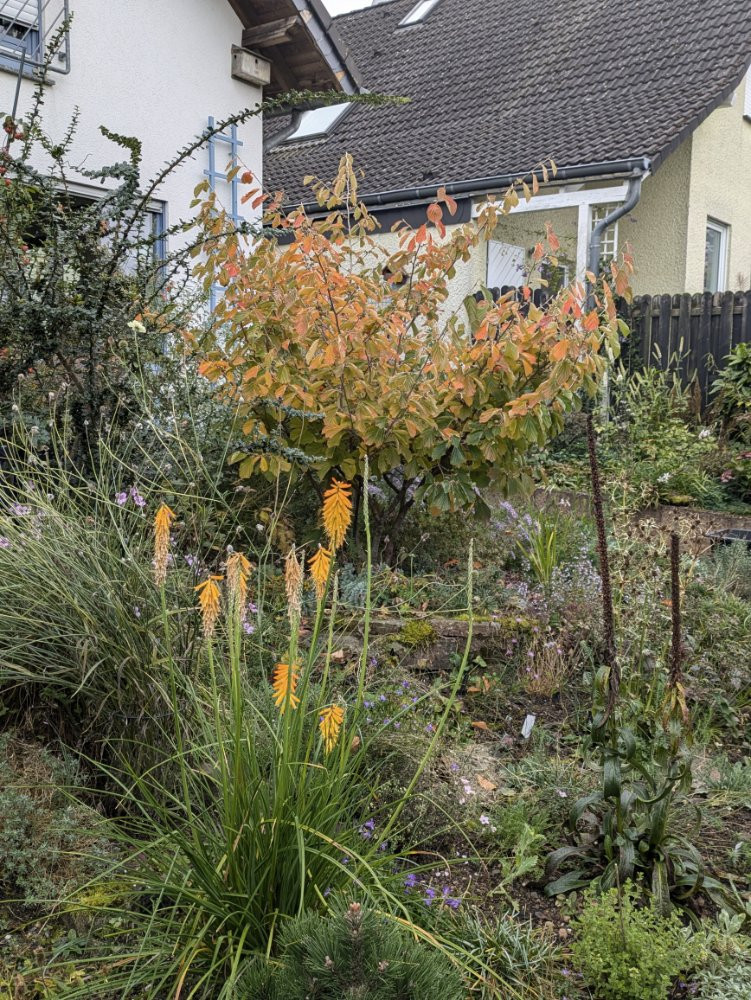 ja, das ist Cotoneaster franchettii, den ich mir als Bäumchen gezogen habe. 2013 als kleines Kerlchen bei Scholl gekauft. Bienen, Hummeln und Amseln lieben ihn, und ich mag ihn auch!AndreasR hat geschrieben: ↑5. Okt 2024, 08:08 Das auf dem letzten Foto ist ein Cotoneaster, oder? Die sollte man wieder viel häufiger pflanzen, nachdem sie in den 70er Jahren inflationär verwendet wurden und irgendwann arg aus der Mode gekommen sind. Dabei ist der Beerenschmuck wunderschön, einige sind immergrün und haben dabei deutlich eleganteres Laub als Kirschlorbeer und Co...