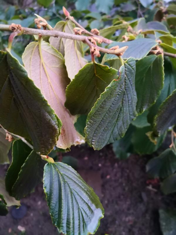 Die Äste sind dieses Jahr auch etwas bogiger und mit den teilweise hängenden Blättern macht das einen kranken Eindruck auf mich. Aber wenn das normaler ist für eine Hamamelis, das ist das gut :)
