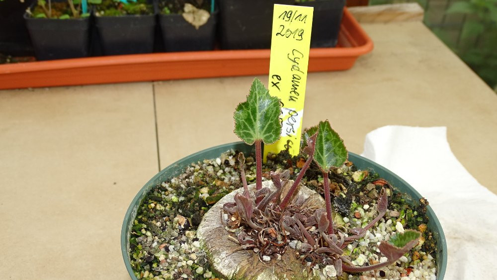 Heute mal ein paar Cyclamen graecum ssp. candium welche ich, die im hinteren Bereich geschenkt bekommen habe und die beiden Vorderen welche sich bei uns aus eigenen Cyclamen-Samen entwickelt haben. Rechts ein C. persicum.