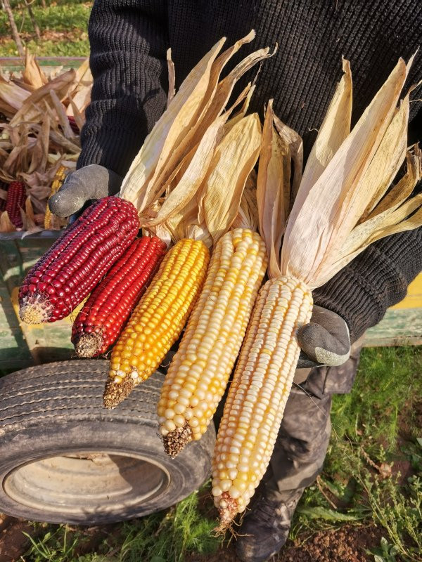 Schwieriges Jahr mit der verzettelten Blüte, die Spitzen der Kolben sind taub. Rund 150 Kolben sind es geworden, davon waren 9 die nicht rot waren, sondern weiß/gelb. 6%, das ist erst mal ok fürs 4te Jahr. Da wird weiter selektiert. Rot ist ja auch nicht rot, da kann schon weiter ausgelesen werden.