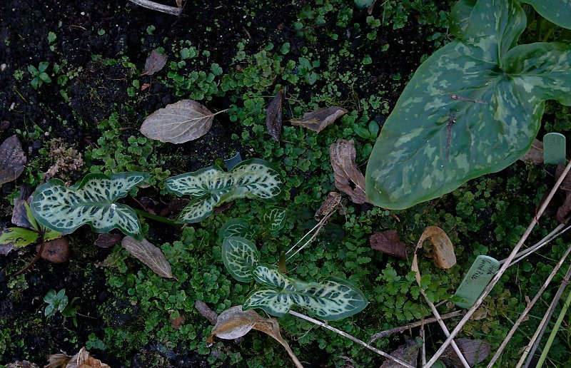 Während bei manchen Arum bereits die Blätter voll entfaltet sind, beginnen andere erst mit dem Entrollen.