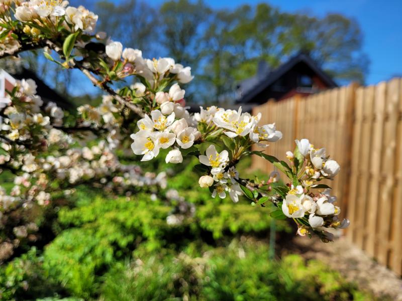 will im Herbst dieses Jahr auch einen Zierapfel pflanzen ;D Aktuell steht an der Stelle eine Forsythie. Die Blüten der Forsythie werden jedoch jedes Jahr von den Spatzen abgepickt und landen auf dem Rasen. ::) So fehlt an dieser Stelle im Frühling die Blütenbracht.