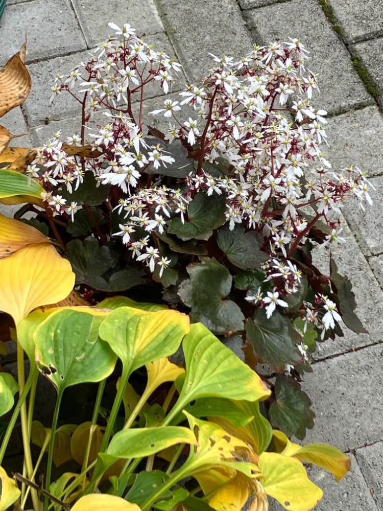 Über den letzten Winter stand der Oktobersteinbrech Marke GC im kleinen Verkaufstöpfchen ungeschützt auf der Nordseite im Topfquartier und wollte danach weiterleben. Ich habe gestaunt, dass er so winterzäh ist.