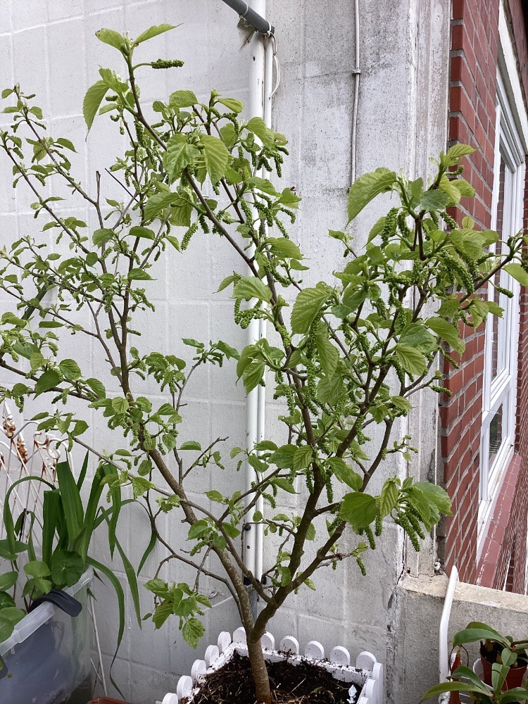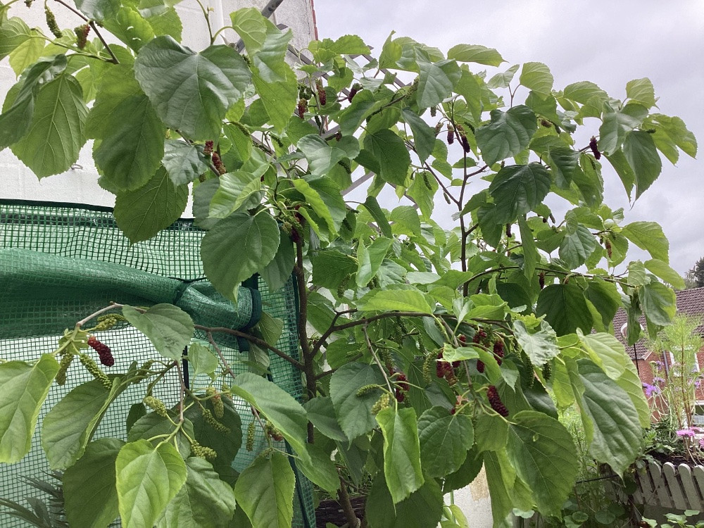 Meine erste Maulbeere war eine Discounterpflanze, die sich nach ca 6 Jahren Wartezeit mit der ersten Blüte und auch den Blüten seitdem als wahrscheinlich rein männlich geoutet hat. Inzwischen über 10 Jahre alt und ein 5 Meter Baum darf er als Schattenspender neben der Terrasse aber bleiben.
