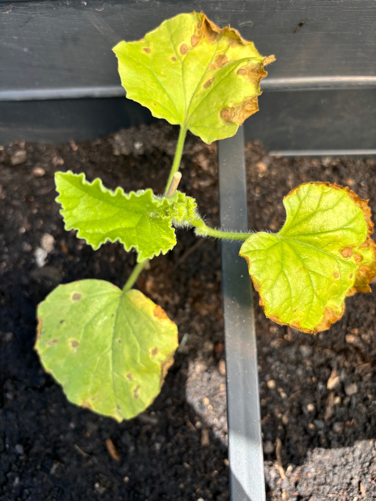 Kälte kann ich ausschließen, da sie erst vor kurzem ausgepflanzt wurden. Ich habe sie aber einen Tag vor dem Auspflanzen gedüngt, weil ich sie eigentlich erst im Laufe der Woche draußen auspflanzen wollte. Hatte aber dann am Samstag doch Zeit und habe sie spontan ausgepflanzt.