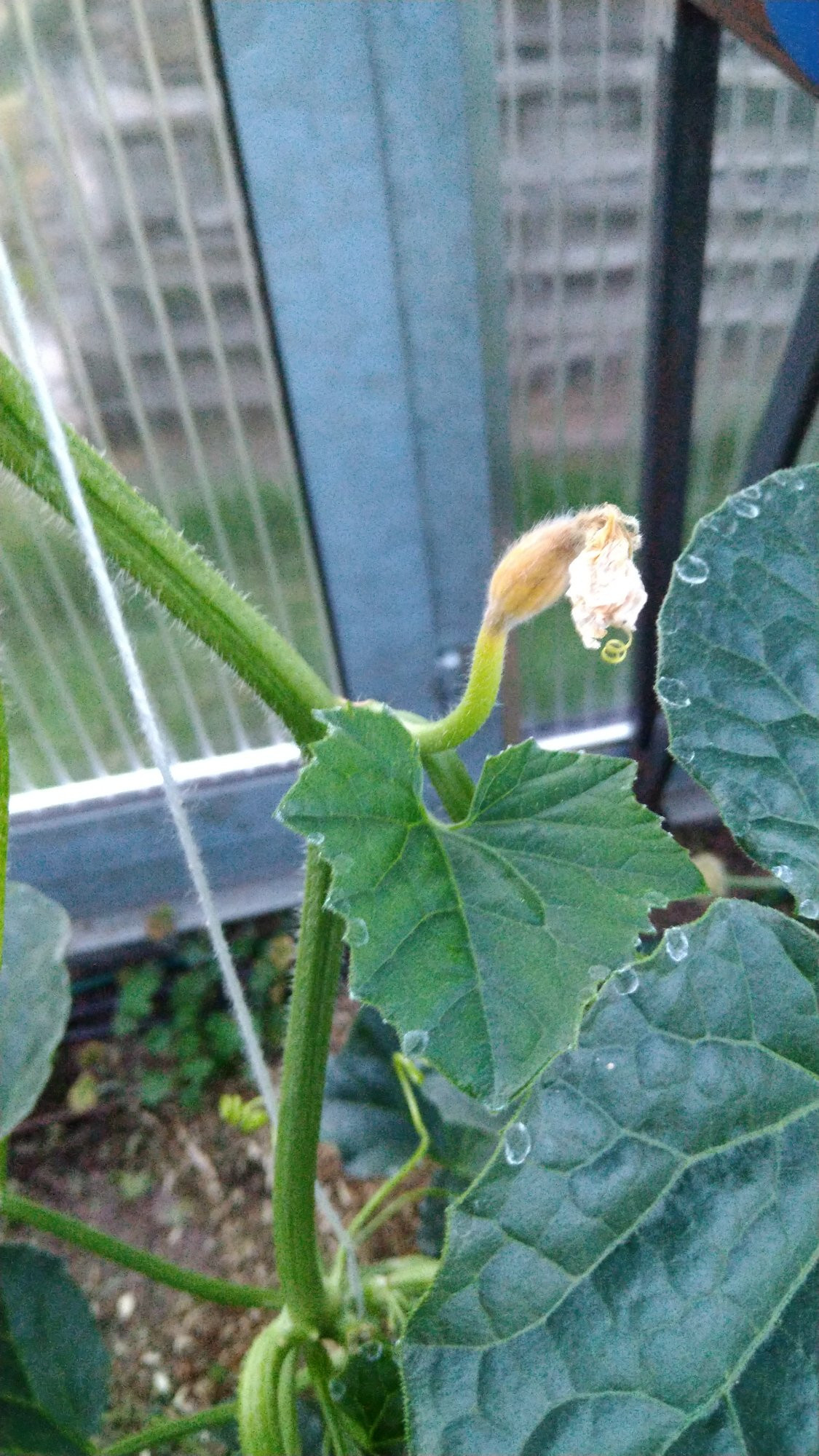 Bei mir ist es auch so. 2 m sind geknackt. Der erste Fruchtansatz in gut 1 m aber abgeworfen. Blöd, dass ich den zweiten schon ausgeknipst habe... Ist etwa so groß wie eine Eichel. Die nächsten lasse ich länger dran.