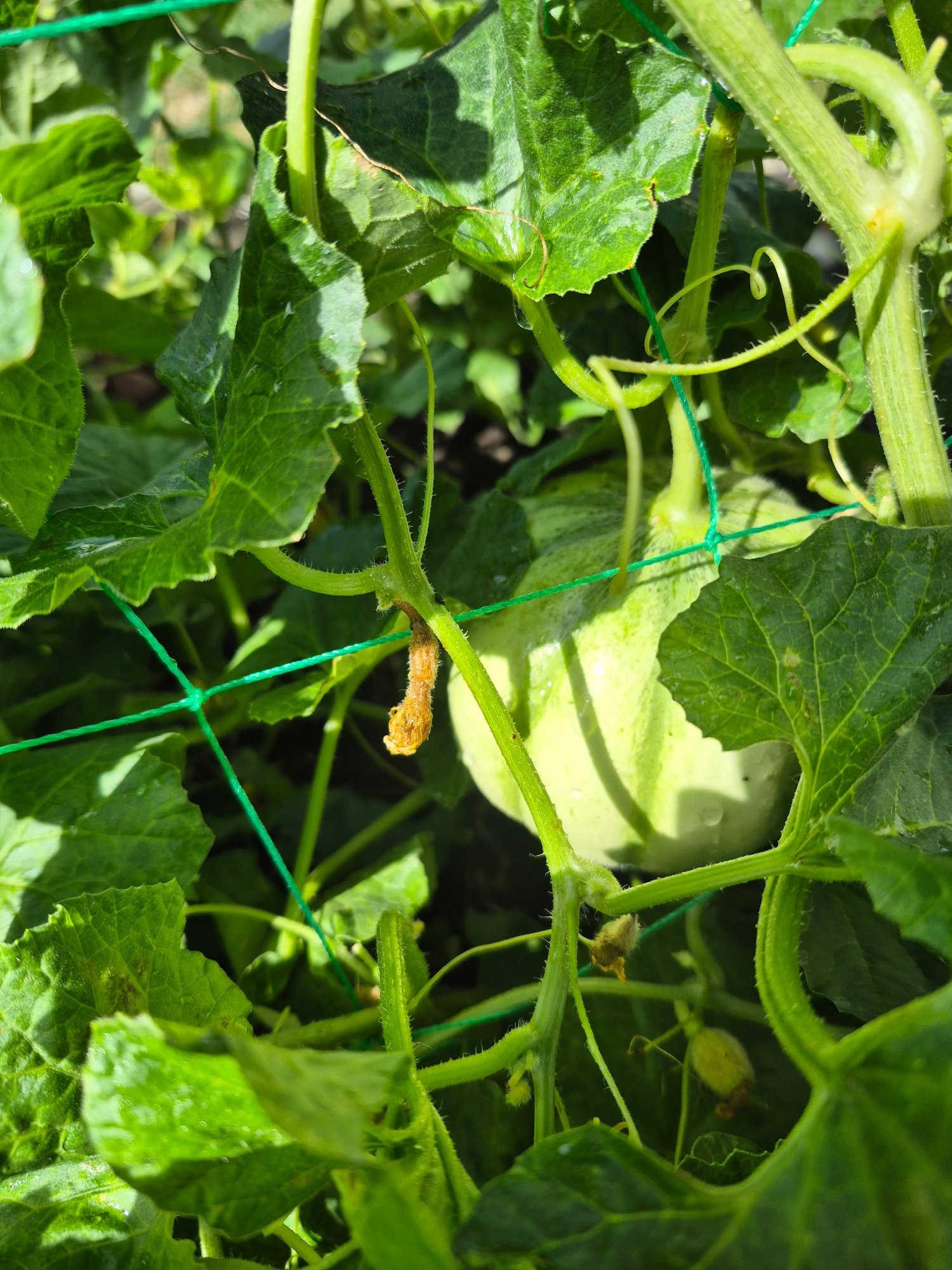 Ich kann nur von meiner Erfahrung sprechen.lucullus_52 hat geschrieben: ↑16. Jul 2025, 19:10 Bei meinen Charentais-Melonen und Petit Gris de Rennes sehe ich nicht nur Fruchtansätze, sondern schon recht hübsche Früchte. Ich habe sie in diesem Jahr so gepflanzt, daß sie an einem Netz hochranken sollen. Richtig freiwillig machen sie das aber nicht, ich muß sie alle 3-5 Tage wieder etwas "einfädeln" und hoffe, daß die Früchte auch bei zunehmendem Gewicht nicht vom Stiel reißen.