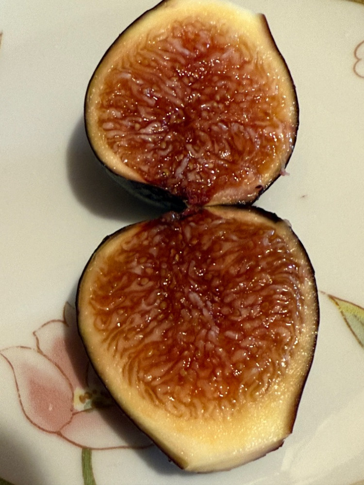 Habe bzw musste beide mit einem Messer beschneiden, da um den Stiel herum grünlich harte Stellen verblieben waren, der Rest bläuliche bis leicht violette und weiche Haut. Geschmacklich und entgegen Vermutung: überraschend kräftig bzw. angenehm süß, Erdbeermarmeladig.