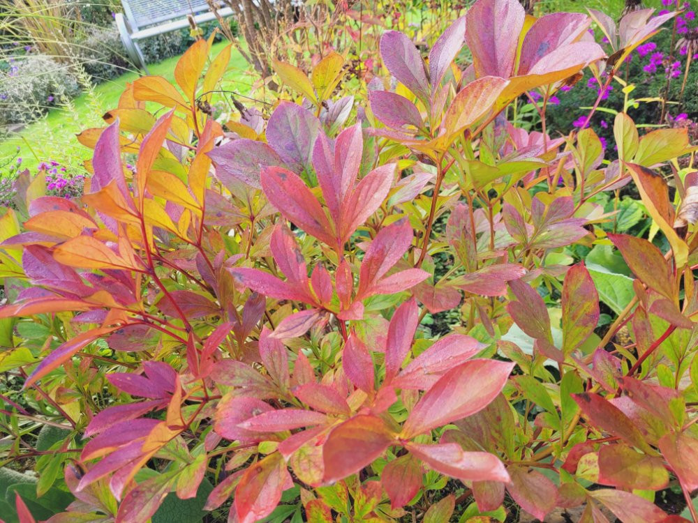 Nun leuchtet auch das Laub der Paeonia lactiflora 'Swarte Petter '.