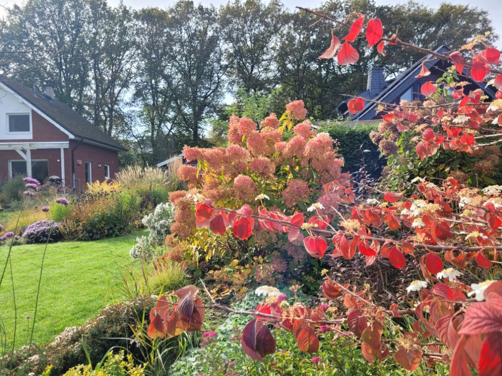 Der Etagenschneeball 'Mariesii ' blüht immernoch zum 2. Mal in diesem Herbst.