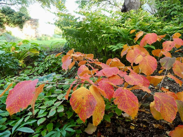 Aber auch das abgefallene Laub ist noch eine Weile zierend, solange es die leuchtende Farbe behält.