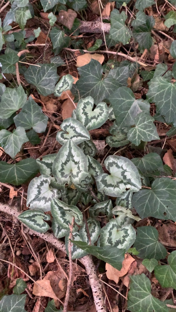 Ein paar cyclamen habe ich als reine blattstauden selektiert mit blattform Zeichnung und einem hohen Blatt sodass es aus dem Efeu heraussticht