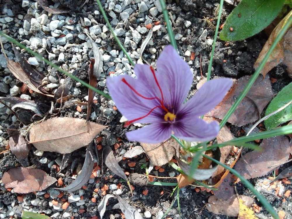 Gut sichtbar sind die 3 roten Narben der Blüte aus denen das Safran-Gewürz gewonnen wird.