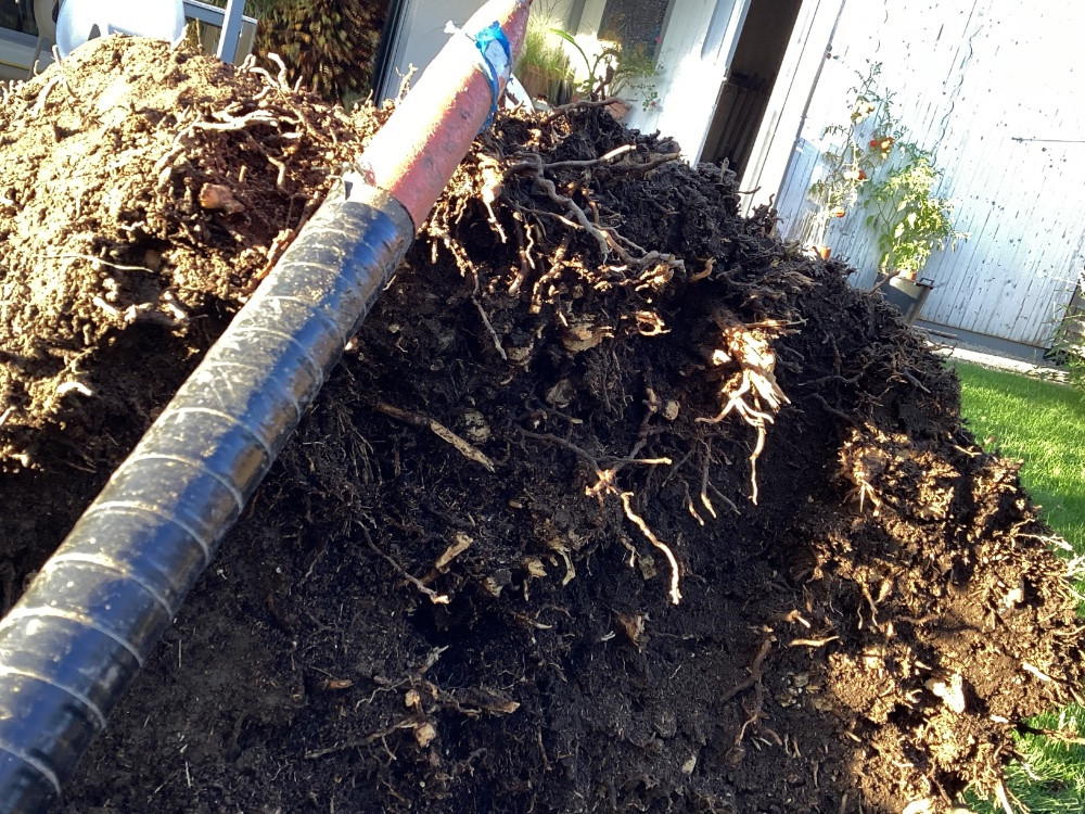 Gehäckselt, mit Kompost vermischt, nochmal durch und vermulcht.