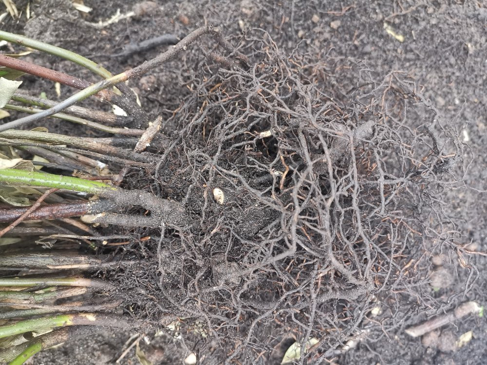 Egal, man sieht schön den Blumentopfeffekt, in der Mitte nichts, nur außen Wurzeln, 90% vom Substrat bleiben ungenutzt da nicht durchwurzelt.