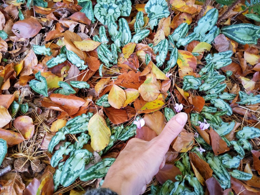 Cyclamen hederifolium ssp. crassifolium Aussaat 2019. Heute sind noch zwei Pflanzen im Garten vorhanden. Die Aufnahmen sind nicht sehr gut.