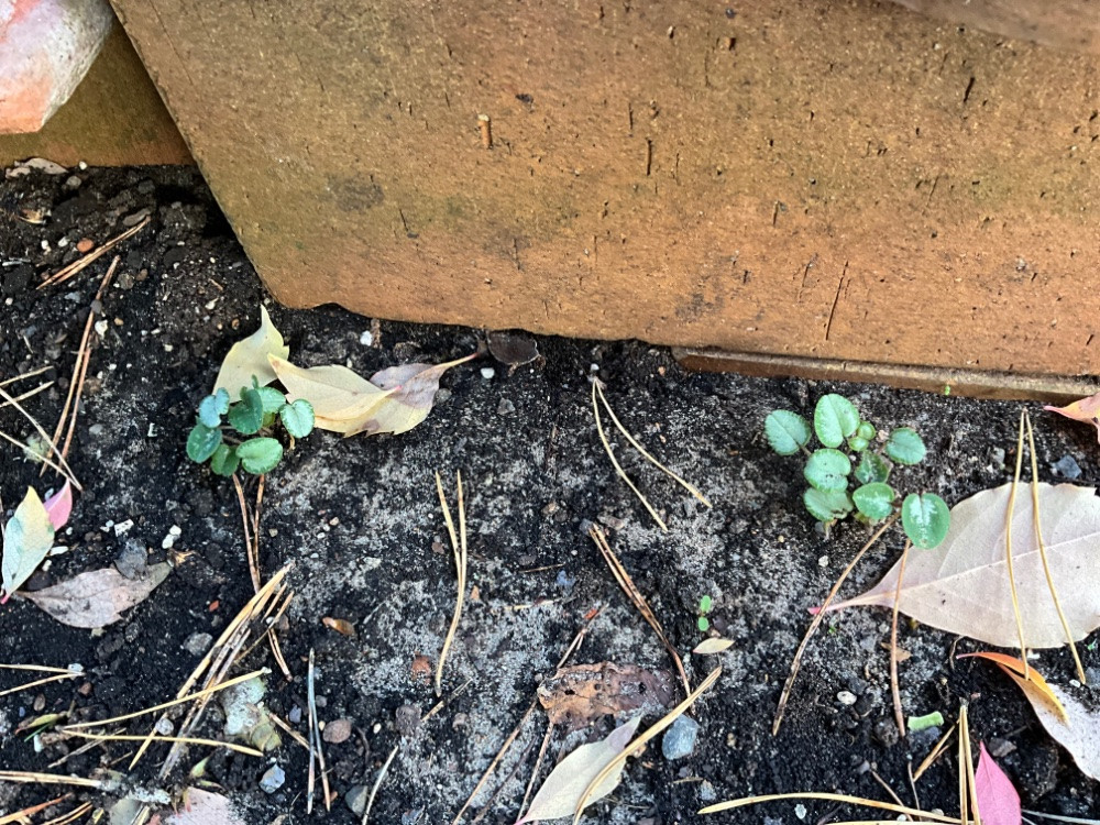Wie man es sieht… Ich habe einen kleinen Trampelpfad zwischen meinen Cyclamen frei gelassen und gerade dort sprießen die ganzen von den Ameisen verschleppten Sämlinge.