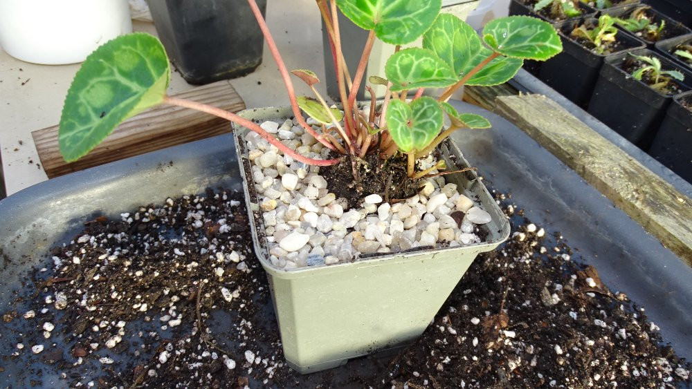 Da die Cyclamen sich gerade in der Wachstumphase befinden wird gerade umgetopft.