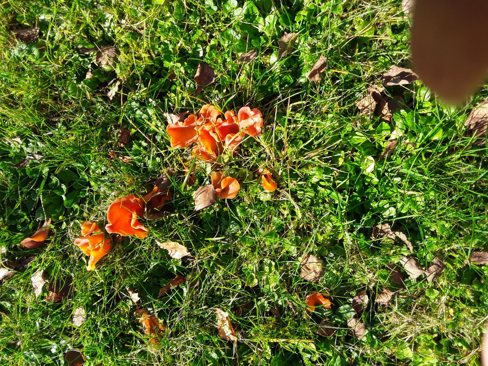 Die Pilze sehen ja schon sehr verstorben aus. Das Gelbe, ist das ein Schleimpilz, der den anderen Pilz zersetzt?